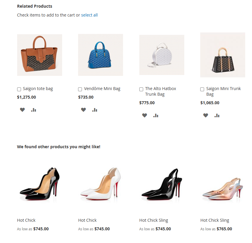 โข Related products: products linked by attributes to encourage catalog discovery.