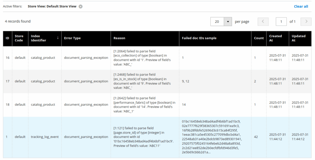 A new menu entry is available in Elasticsuite > System > Indexing / Bulk Errors.