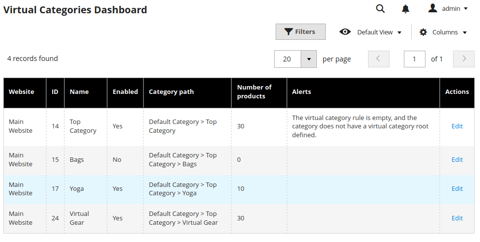 Along with the decoration of virtual categories with the Elasticsuite logo in the Catalog > Categories category tree menu also introduced in this release, it is intended to help you quickly locate and evaluate your virtual categories.