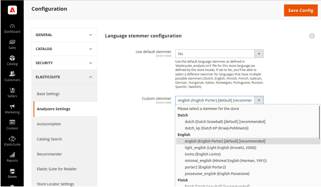 But since another approach sometimes used by Elasticsuite end users was simply to test and switch to another available language stemmers, we’ve decided to make it possible from the Magento Admin.